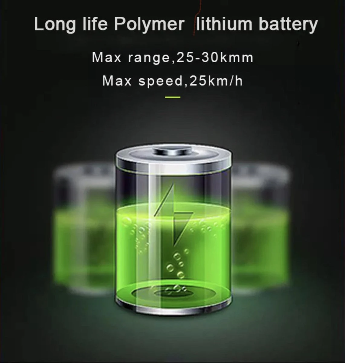 Range per charge(Assistance): 50±5KM