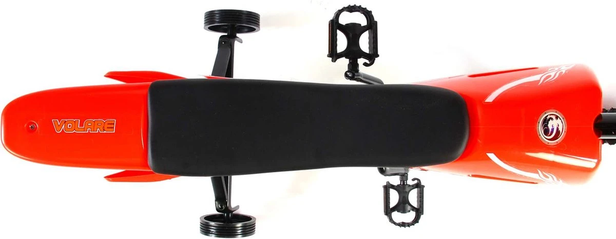 Veiligheid staat voorop! Daarom heeft deze gave fiets een handrem en terugtraprem en een gesloten kettingkast. Daarnaast heeft de fiets afneembare zijwieltjes om snel te leren fietsen en reflectoren in de wielen, voorop en achterop de fiets. Ook aan het comfort is gedacht. De mooie oranje Volare fiets heeft een comfortabel zacht racezadel, extra grote spatborden en een uniek motor frame. Om zo lang mogelijk van de fiets te kunnen genieten is het stuur in hoogte verstelbaar. Kortom: een topkwaliteit fiets voor een geweldige prijs!